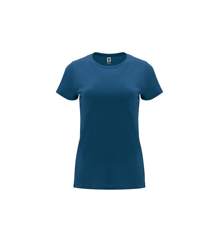 Camiseta de manga corta entallada para mujer. Cuello redondo en canalé 1x1. Cubrecosturas reforzado en cuello.