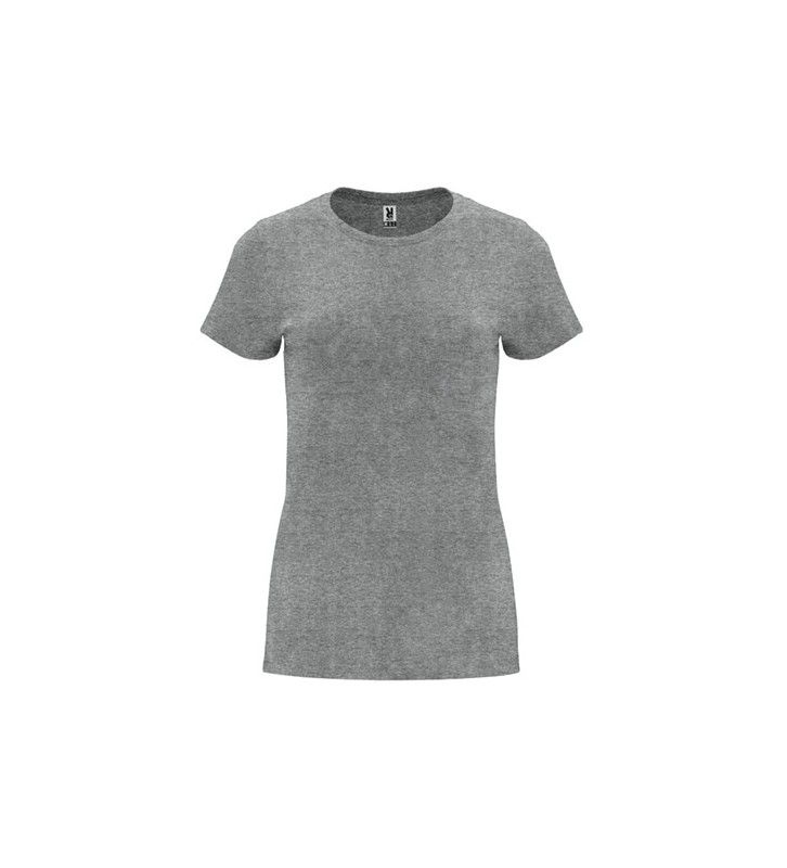 Camiseta de manga corta entallada para mujer. Cuello redondo en canalé 1x1. Cubrecosturas reforzado en cuello.