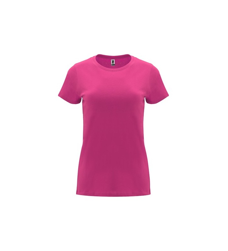 Camiseta de manga corta entallada para mujer. Cuello redondo en canalé 1x1. Cubrecosturas reforzado en cuello.