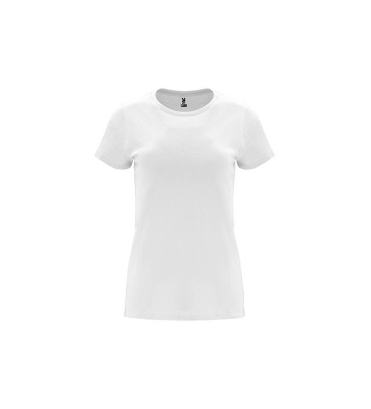 Camiseta de manga corta entallada para mujer. Cuello redondo en canalé 1x1. Cubrecosturas reforzado en cuello.
