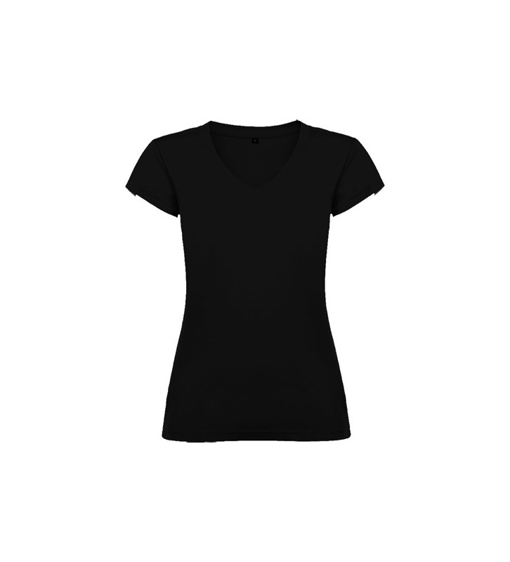 Camiseta de mujer con manga corta, escote en cuello de pico y acabados en ribete acanalado. Corte entallado con costuras laterales.