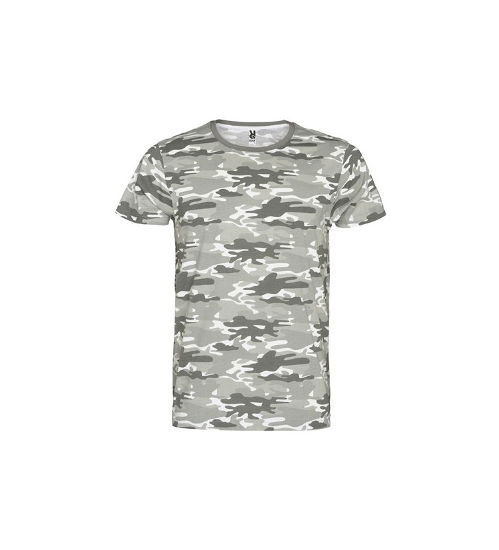 Camiseta manga corta, estampado camuflaje y cuello redondo.