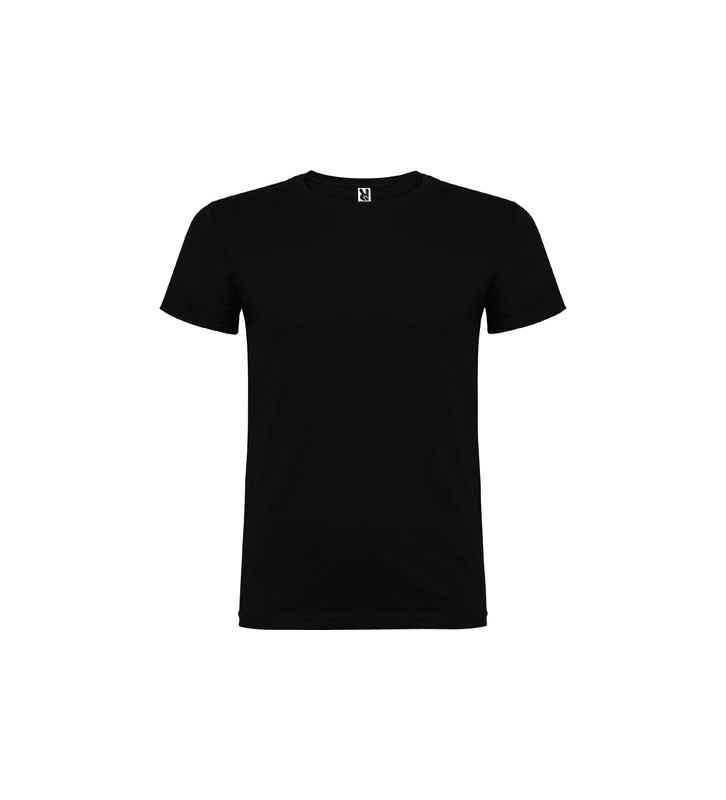 Camiseta de manga corta, de cuello redondo doble con elastano, confeccionada en tejido tubular en tallas de adulto, y con costuras laterales en tallas de niño, con cubrecosturas reforzado en cuello.