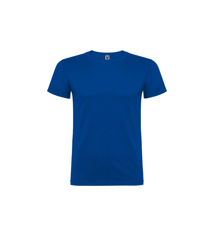 Camiseta de manga corta, de cuello redondo doble con elastano, confeccionada en tejido tubular en tallas de adulto, y con costuras laterales en tallas de niño, con cubrecosturas reforzado en cuello.