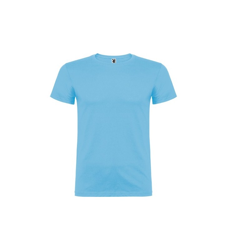 Camiseta de manga corta, de cuello redondo doble con elastano, confeccionada en tejido tubular en tallas de adulto, y con costuras laterales en tallas de niño, con cubrecosturas reforzado en cuello.
