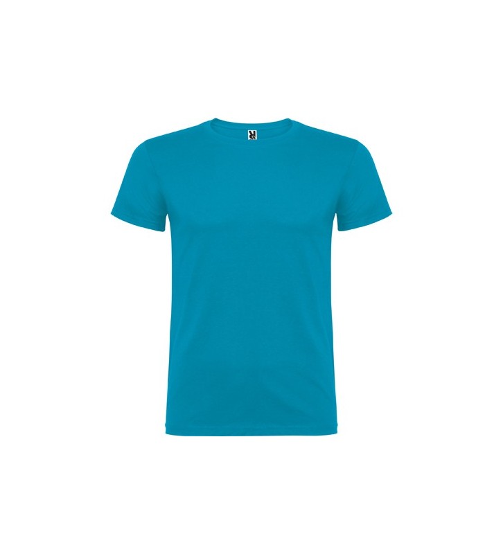 Camiseta de manga corta, de cuello redondo doble con elastano, confeccionada en tejido tubular en tallas de adulto, y con costuras laterales en tallas de niño, con cubrecosturas reforzado en cuello.
