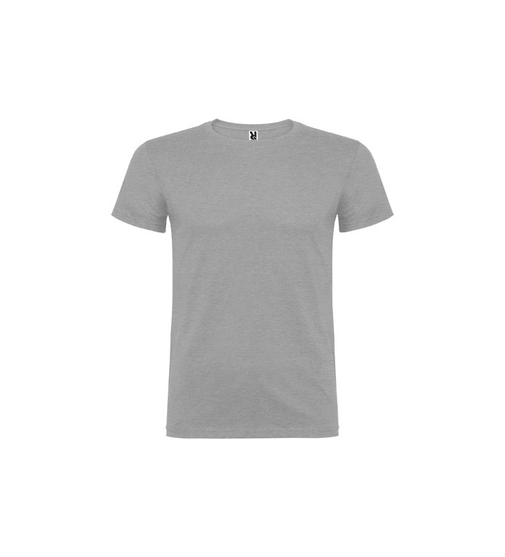 Camiseta de manga corta, de cuello redondo doble con elastano, confeccionada en tejido tubular en tallas de adulto, y con costuras laterales en tallas de niño, con cubrecosturas reforzado en cuello.