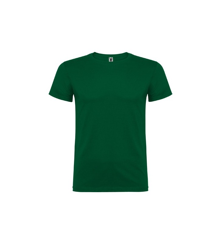 Camiseta de manga corta, de cuello redondo doble con elastano, confeccionada en tejido tubular en tallas de adulto, y con costuras laterales en tallas de niño, con cubrecosturas reforzado en cuello.