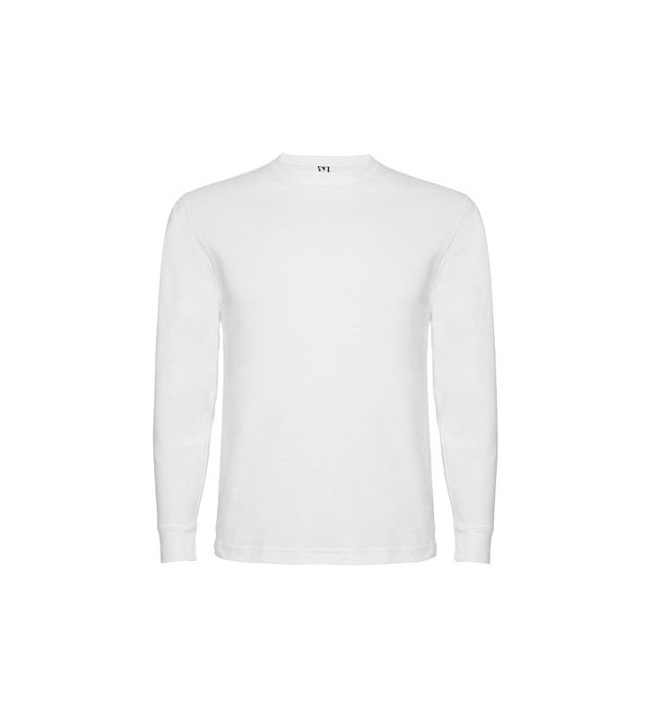 Camiseta de manga larga, tejido tubular, con cuello redondo de 4 capas y puños canalé 1x1.