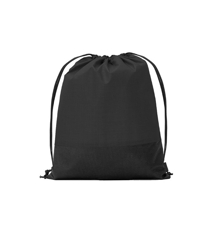 Mochila combinada en tejido non woven (no tejido), con efecto metalizado y tejido liso en color negro.