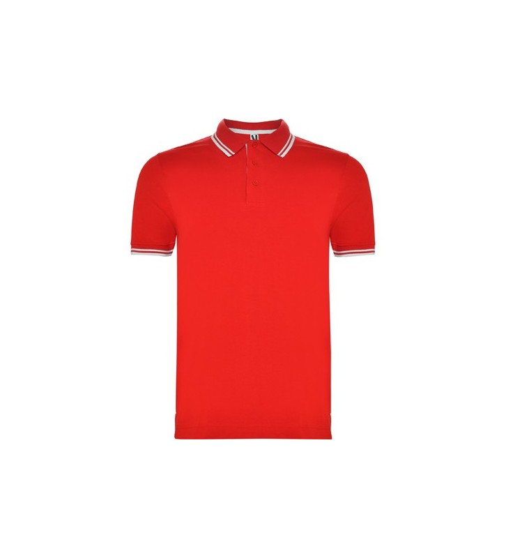 Polo de manga corta, cuello con tapeta de 3 botones a tono. Tapeta interior en contraste con tapeta exterior. Cuello y bocamangas acanalado, cubre costuras reforzado en cuello. Aperturas laterales.