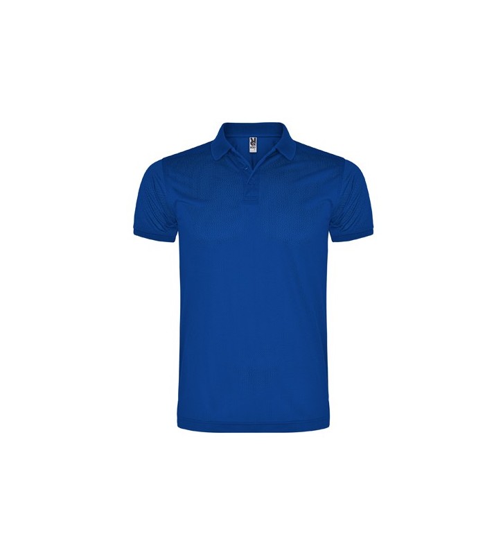 Polo en tejido técnico microperforado con cuello de punto canalé, con tapeta y cubrecosturas.