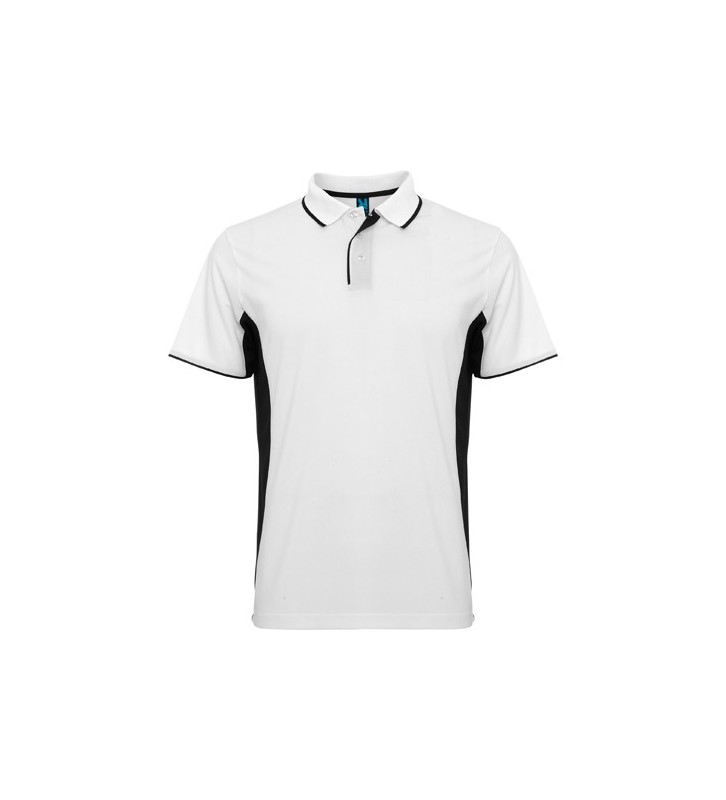 Cuello con abotonadura, cubrecosturas y tapeta en contraste de color.