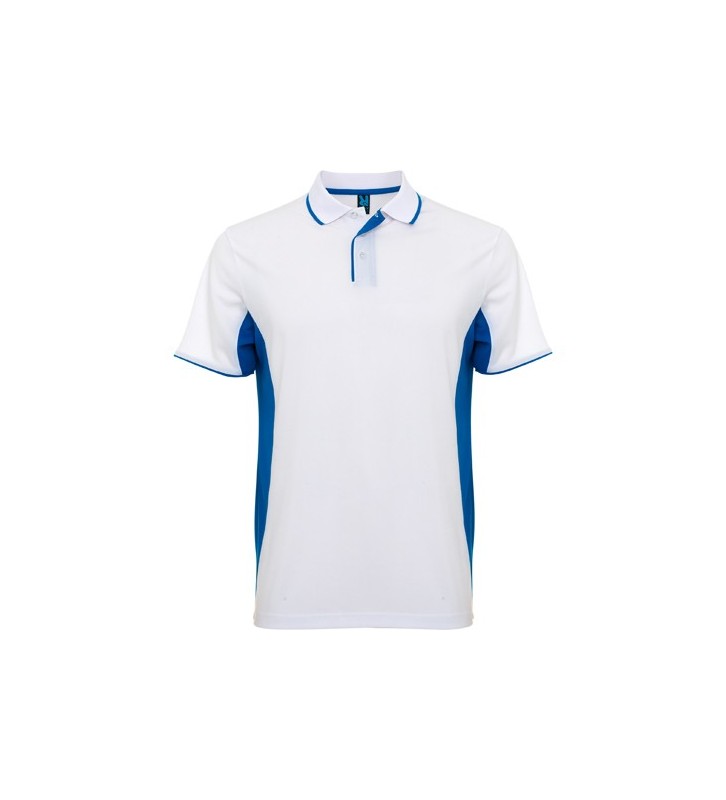 Cuello con abotonadura, cubrecosturas y tapeta en contraste de color.