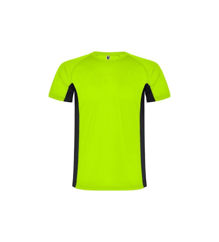 Camiseta técnica combinada con dos tejidos de poliéster, manga corta de estilo ranglan.