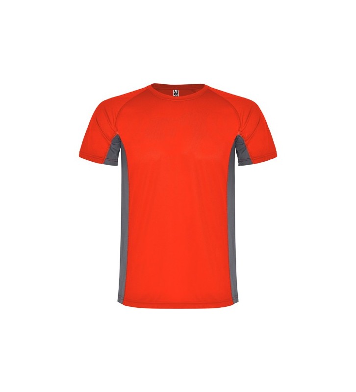 Camiseta técnica combinada con dos tejidos de poliéster, manga corta de estilo ranglan.