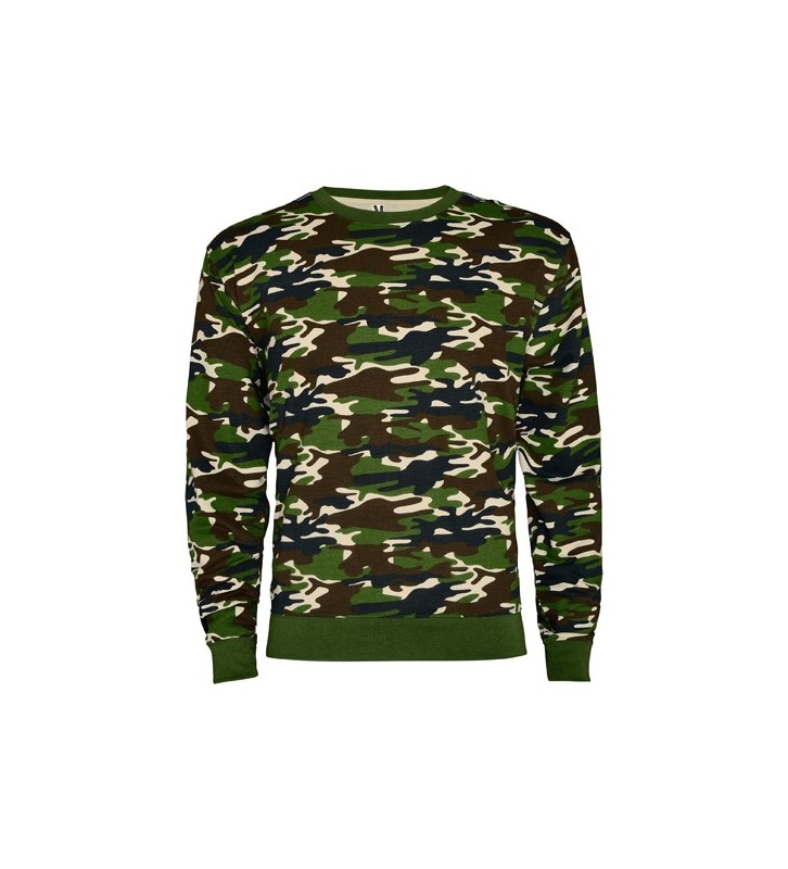 Sudadera estampado camuflaje, cuello a caja con forma redondeada y ribete de canalé.