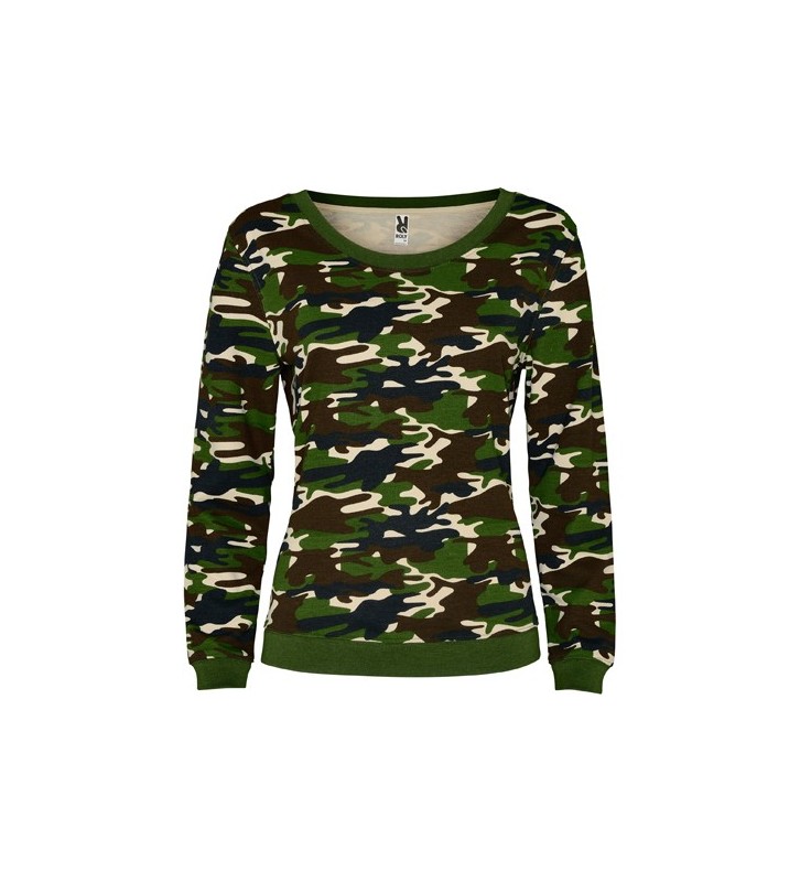 Sudadera estampado camuflaje, cuello a caja con forma redondeada y ribete de canalé.