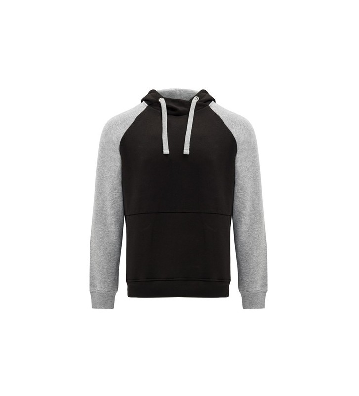 Sudadera bicolor unisex. Capucha con cuello cruzado y ojales metálicos, interior y cordones a contraste.