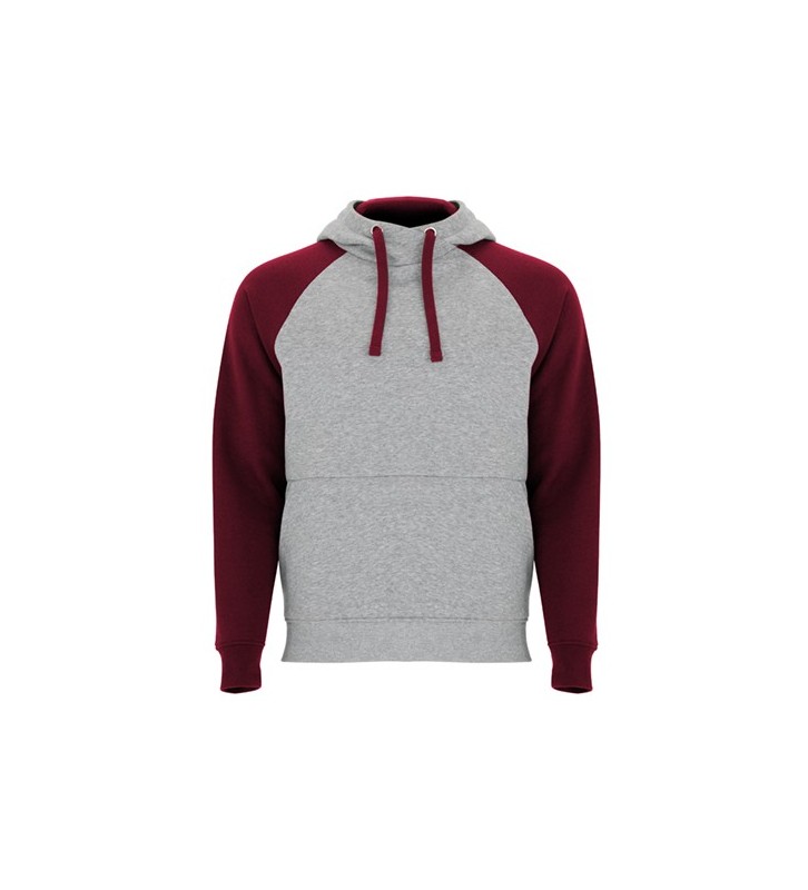Sudadera bicolor unisex. Capucha con cuello cruzado y ojales metálicos, interior y cordones a contraste.