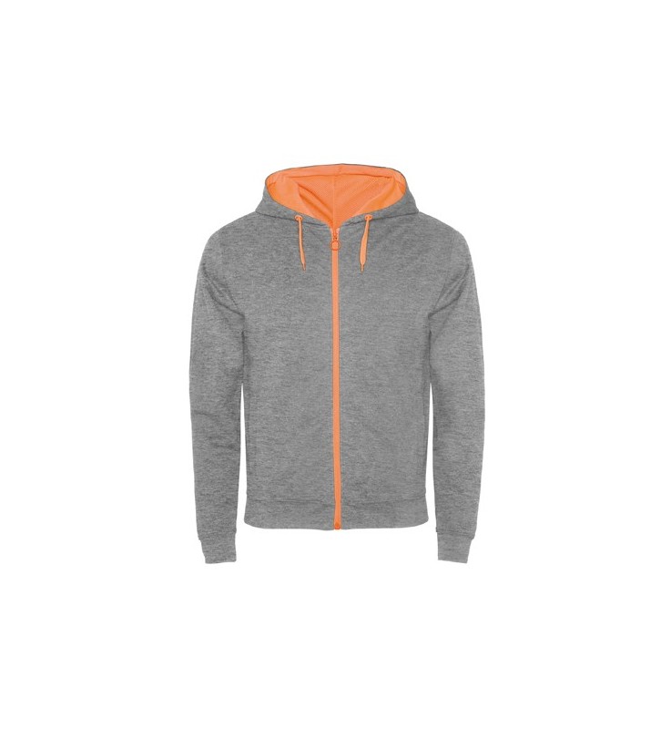 Capucha con forro interior en tejido de poliéster microperforado en contraste color flúor, con cordón y ojales metálicos en contraste color flúor.